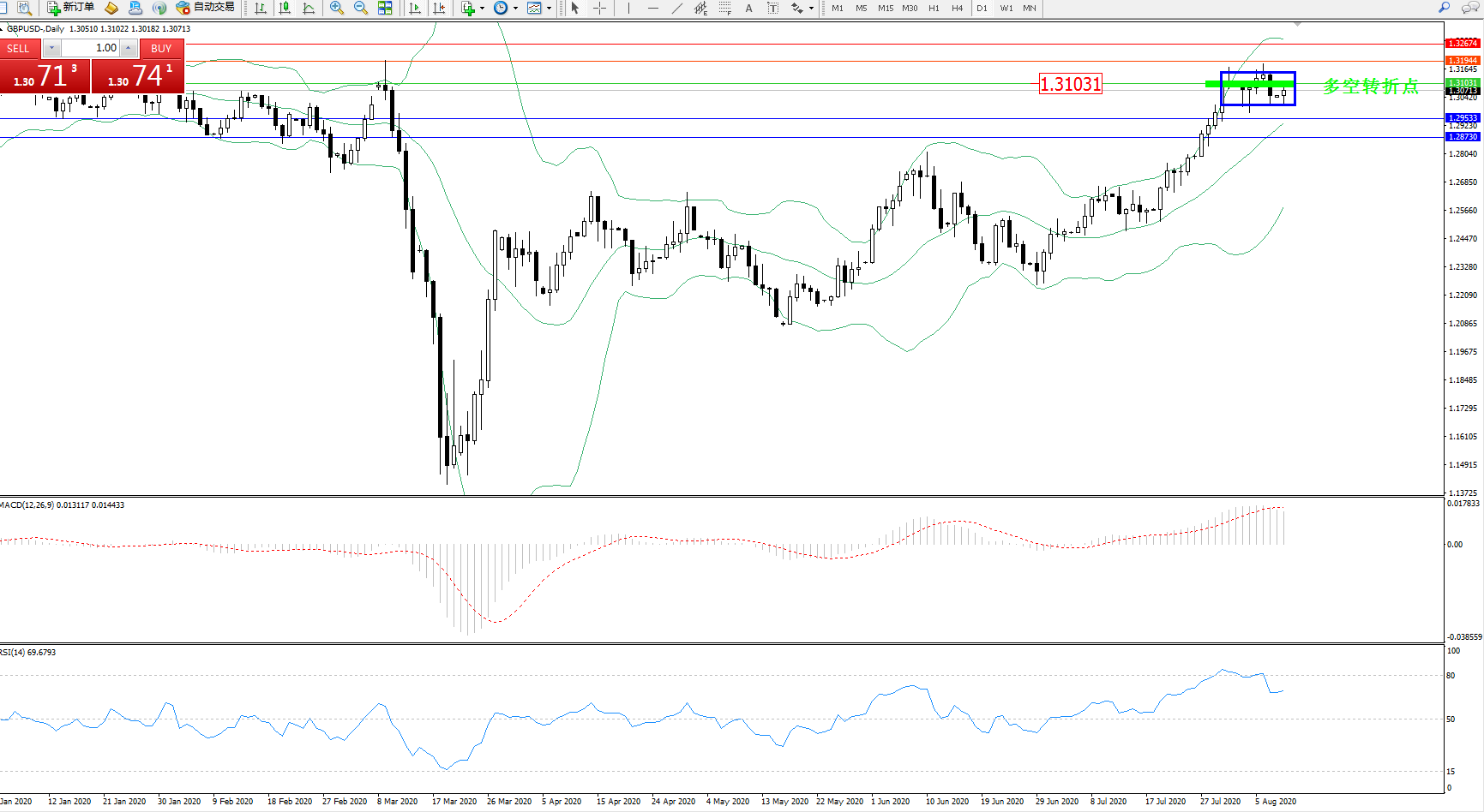 备选策略:1.31031上方看涨,目标1.31944、1.32674