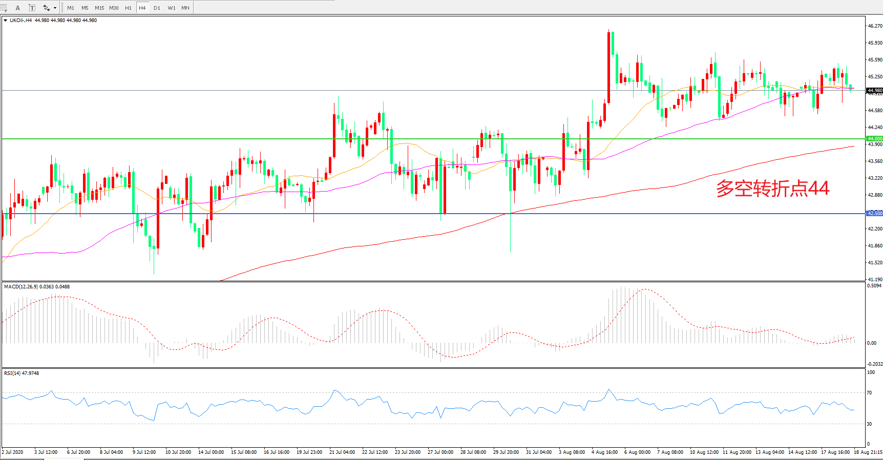 交易策略: 在44.00之上看涨,目标46.50 49.00