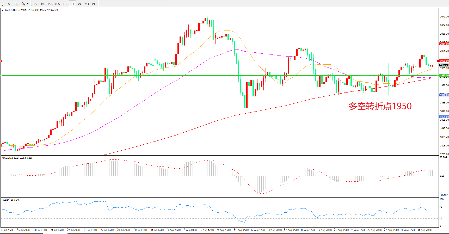 交易策略:  在1950.00之上看涨,目标1980.00   2015.00
