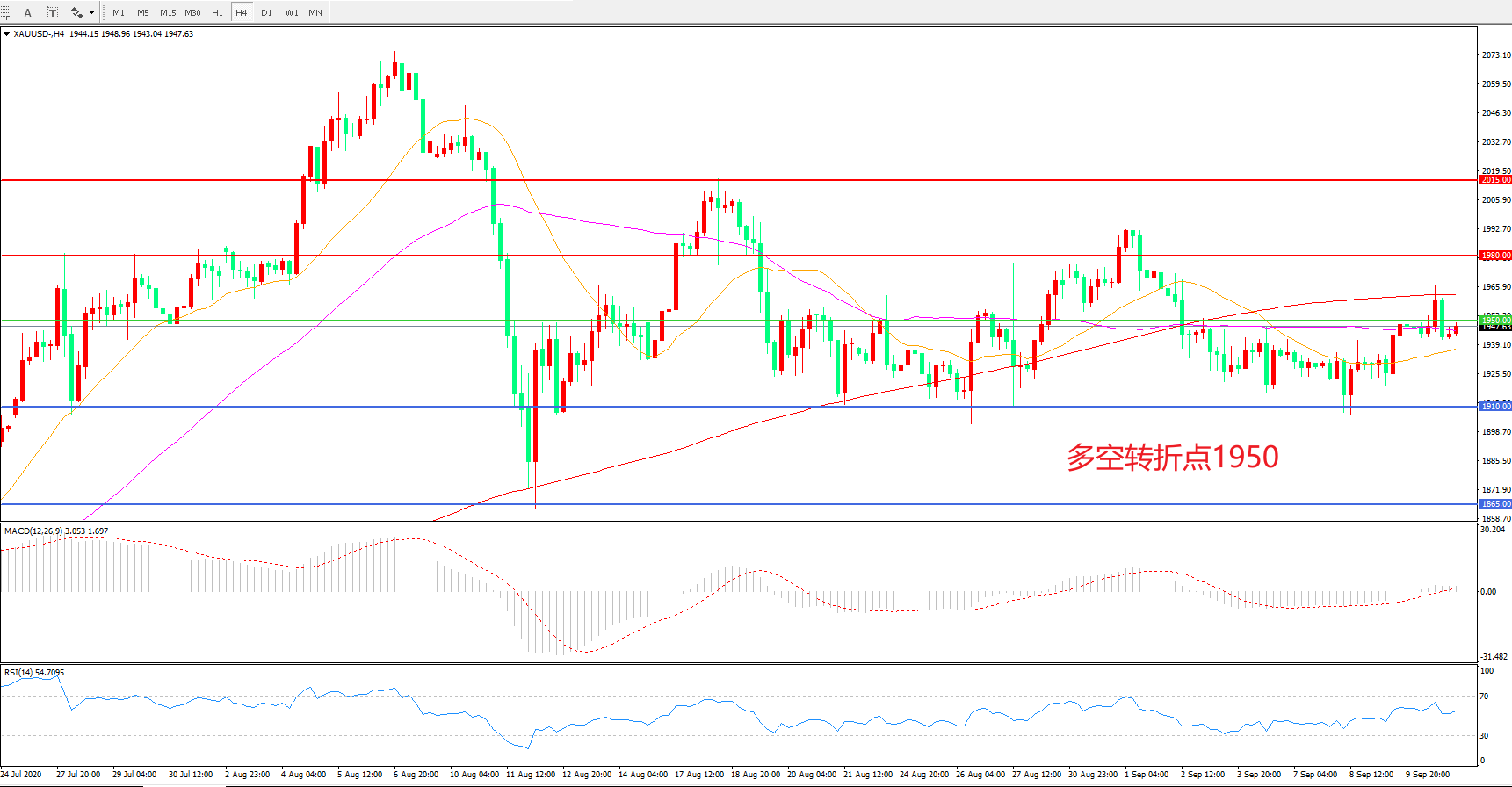 备选策略:   在1950.00之下看跌,目标1910.00         1865.00