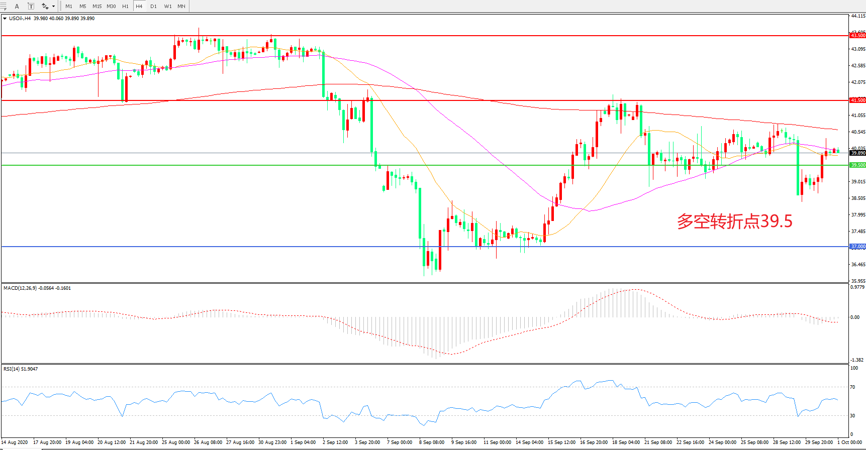 周三(9月30日),根据美国能源信息署公布的数据显示,当周EIA原油库存减少198万桶,好于预期,数据公布后,美国WTI原油冲高回落,最终收报40.00美元/桶。目前美国两党仍然没有就刺激计划达成协议,随着9月初出游高峰的结束,疲软的需求将再次成为原油的市场的“紧箍咒”。