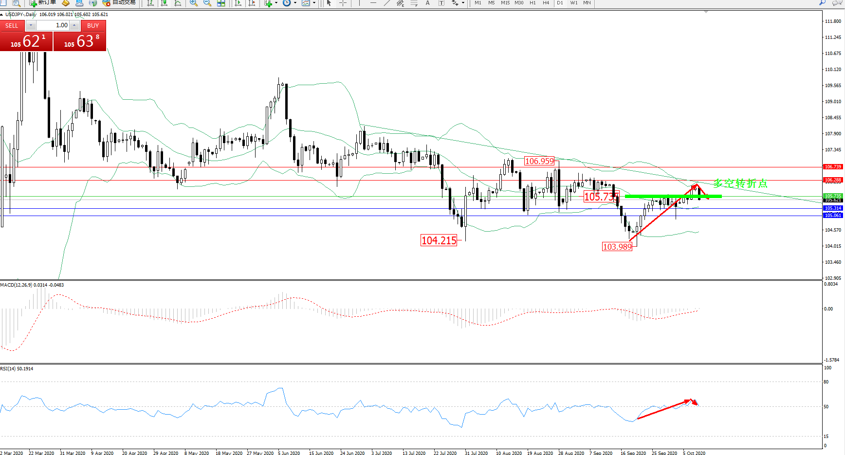多空转折点:105.735
