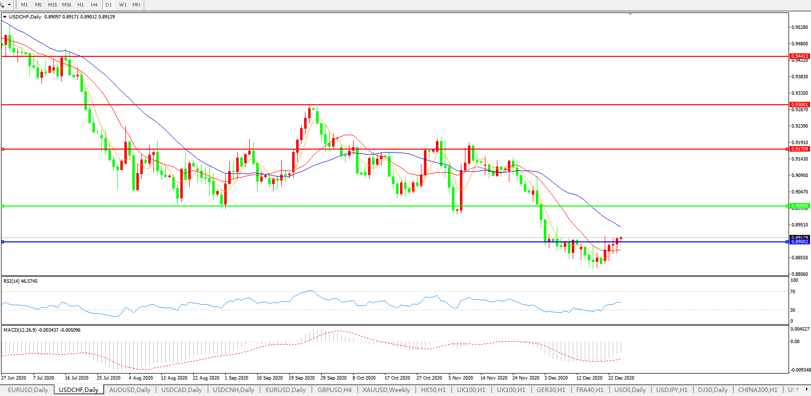 交易策略:0.9000下方看跌,目标0.8900、0.8700