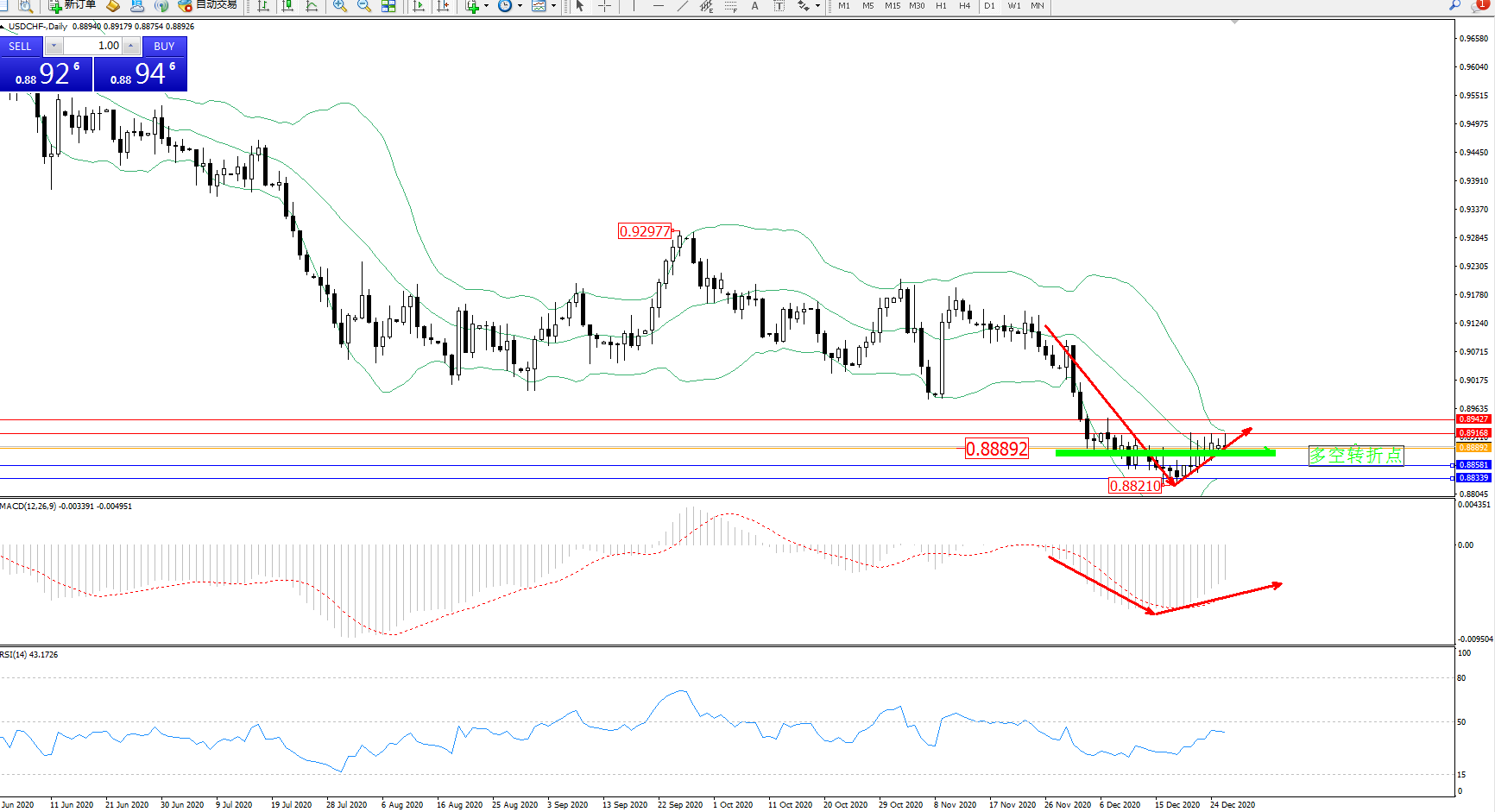 美元瑞郎USDCHF——日K线图显示: