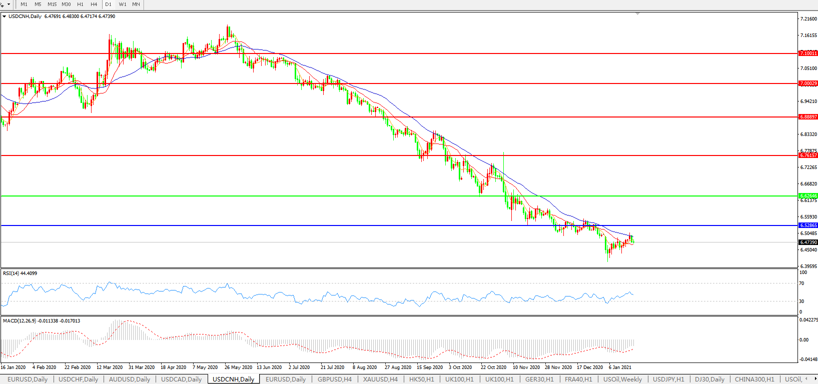 美元兑人民币USDCNH 日线图: