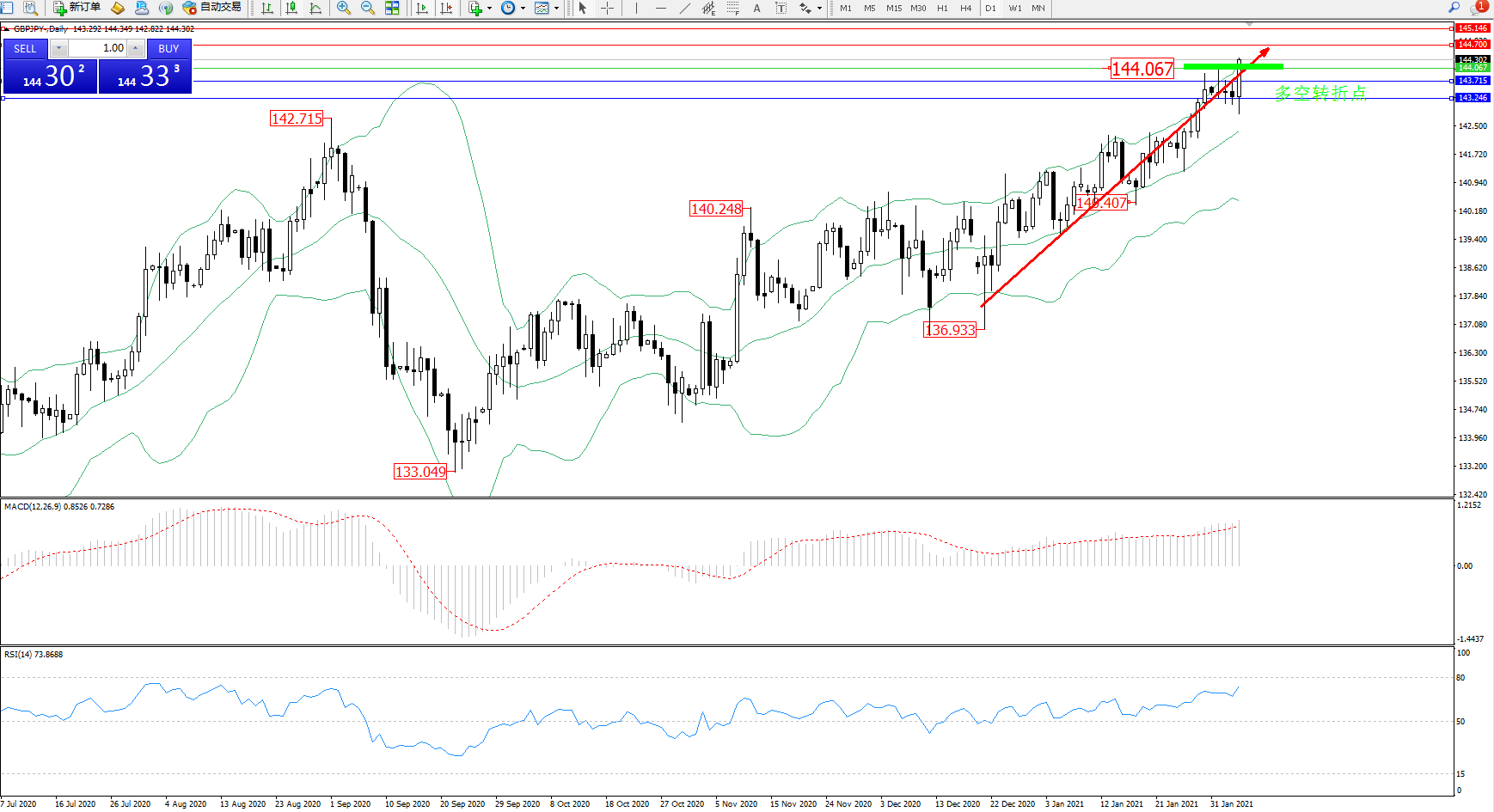 英镑兑日圆高位不断上移至144.235附近徘徊,英国首相约翰逊威胁要暂停履行脱欧协议中关于北爱尔兰的部分内容,因为欧盟此前在疫苗供应争端中威胁要实施边境管制。约翰逊同意对大不列颠和北爱尔兰之间货物往来实施边检的行为在周三被议会议员指责为“出卖”北爱尔兰,对此约翰逊回应称他将采取行动。无论是通过立法还是通过援引议定书第16条,我们将竭尽所能确保爱尔兰海没有任何障碍。由于英国脱欧协议中的《北爱尔兰议定书》对海关检查及相关手续做出了新的规定,贸易商将货物从英国其它地区运往北爱尔兰的物流面临障碍。作为紧急情况触发条款,第16条规定若协议履行造成“严重的经济、社会或环境困难”,任何一方都可以进行干预。过去一周来,围绕北爱尔兰的紧张气氛显著上升,尤其是在欧盟委员会宣布将援引第16条来控制对北爱尔兰的疫苗出口之后,此举让英国和爱尔兰政府措手不及,也激怒了工会政治领袖。尽管欧盟随后承认这是个错误决定,并在数小时内撤消决定,但此事仍可能导致英国脱欧谈判最具争议的问题之一再度浮出水面。