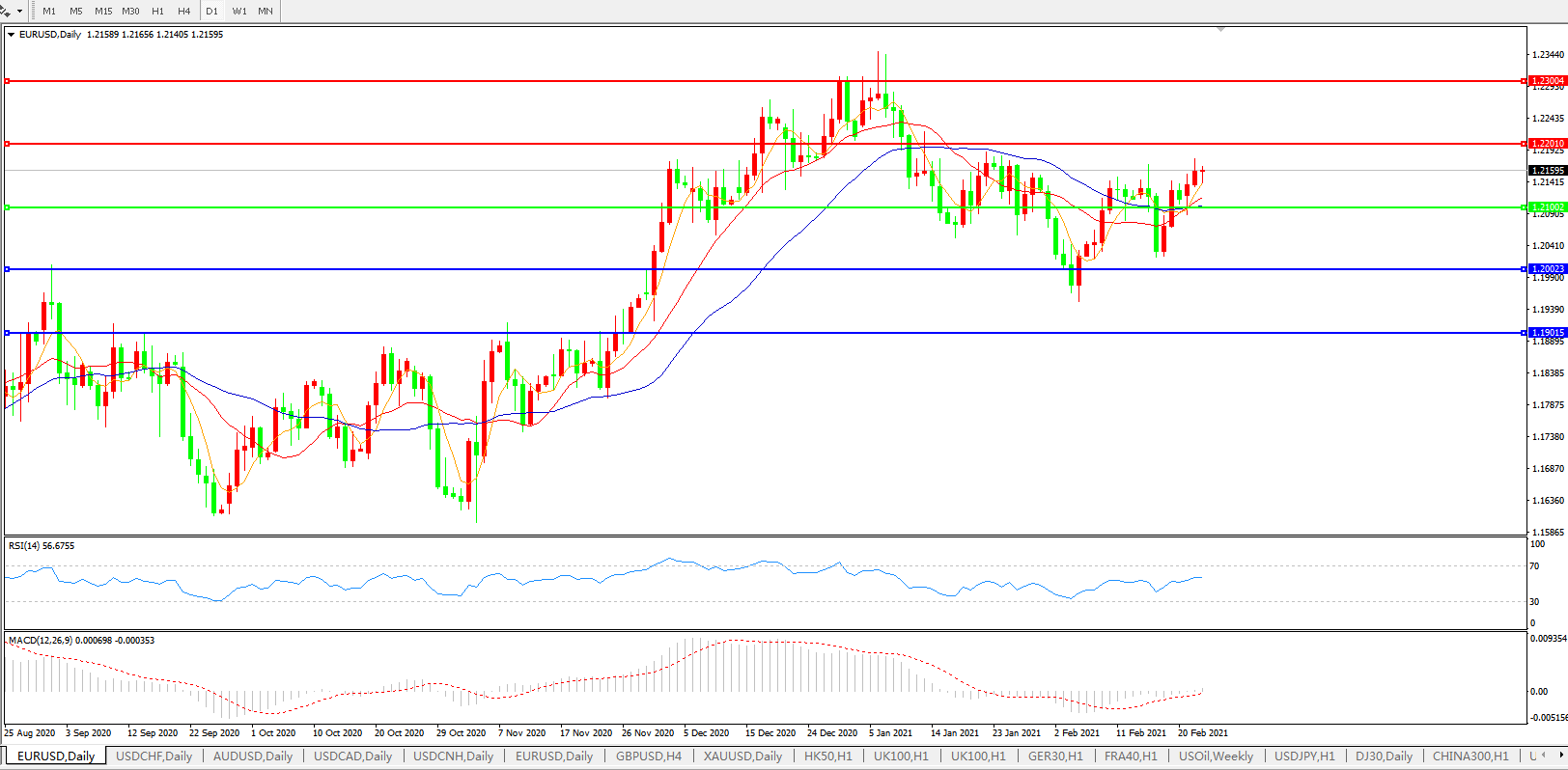 欧元兑美元EURUSD   日线图: