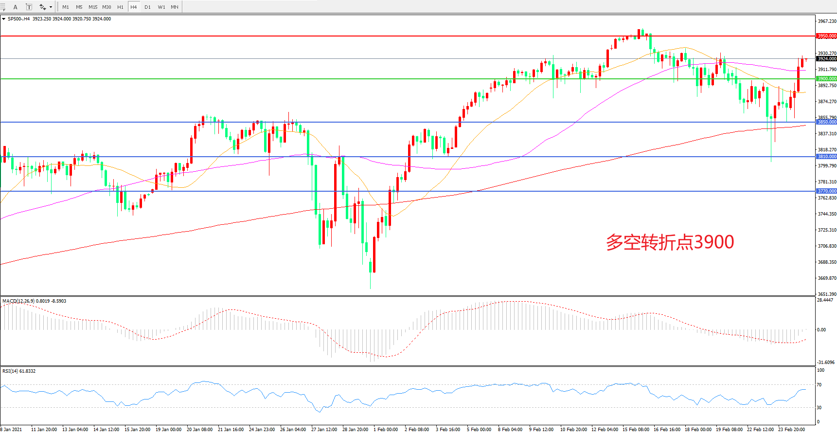 多空转折点:3900.00