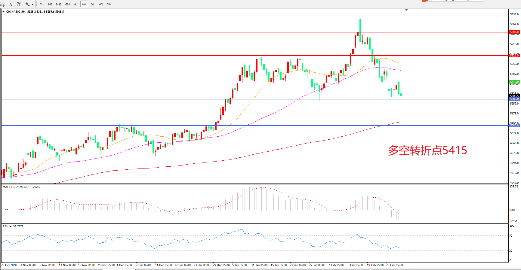 交易策略:在5415.00之下看跌,目标5285.00    5080.00