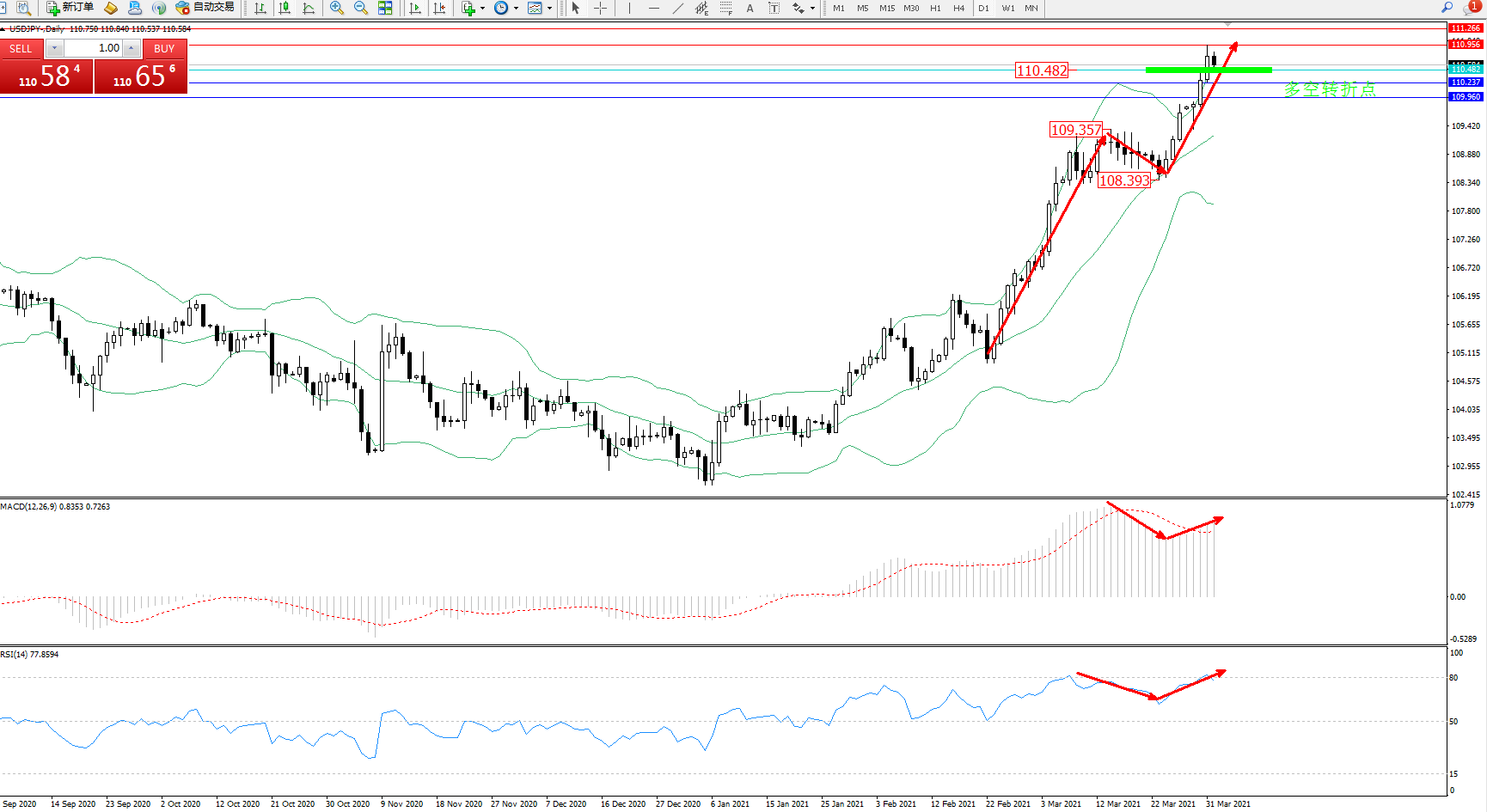美元兑日圆维持110.584附近震荡,日元近期主要受到美国通胀预期高于日本以及美国长期国债收益率上升的影响。国债收益率对非农就业数据的意外表现相当敏感,就业报告显示,3月份非农就业增加了91.6万,是去年8月以来的最高水平,预测中值为66万。5年期美债跑输大盘,反映出人们对美联储提前加息的预期升温。本次非农数据公布的时机正值耶稣受难日。整个欧洲和世界其他地方都在享受复活节假期,这意味着交易量可能会非常低。在这种情况下,价格走势很可能是疯狂的。
