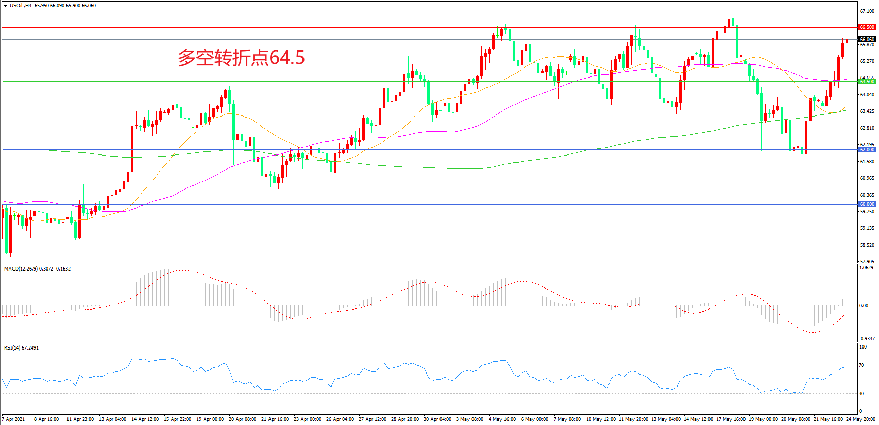 周一(5月24日),伊朗和联合国监督机构国际原子能机构决定,将伊朗的监察协议延长一个月,市场对疫苗接种推动的需求增长更加乐观,预期即使伊朗所受制裁撤销,油市也可以消化伊朗新增的原油供应,美国WTI原油大幅上行,收报66.03美元/桶。不过,从当前的市场上来看,油价真正突破时点似乎并未到来。