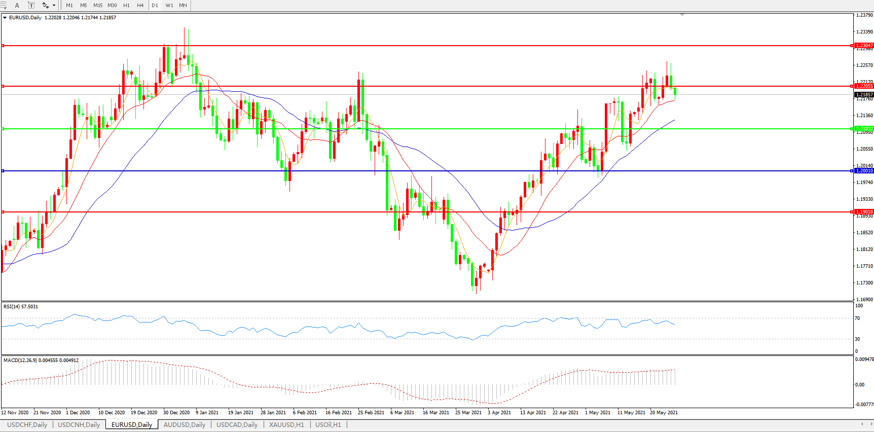 交易策略:1.2100上方看涨,目标1.2200、1.2300