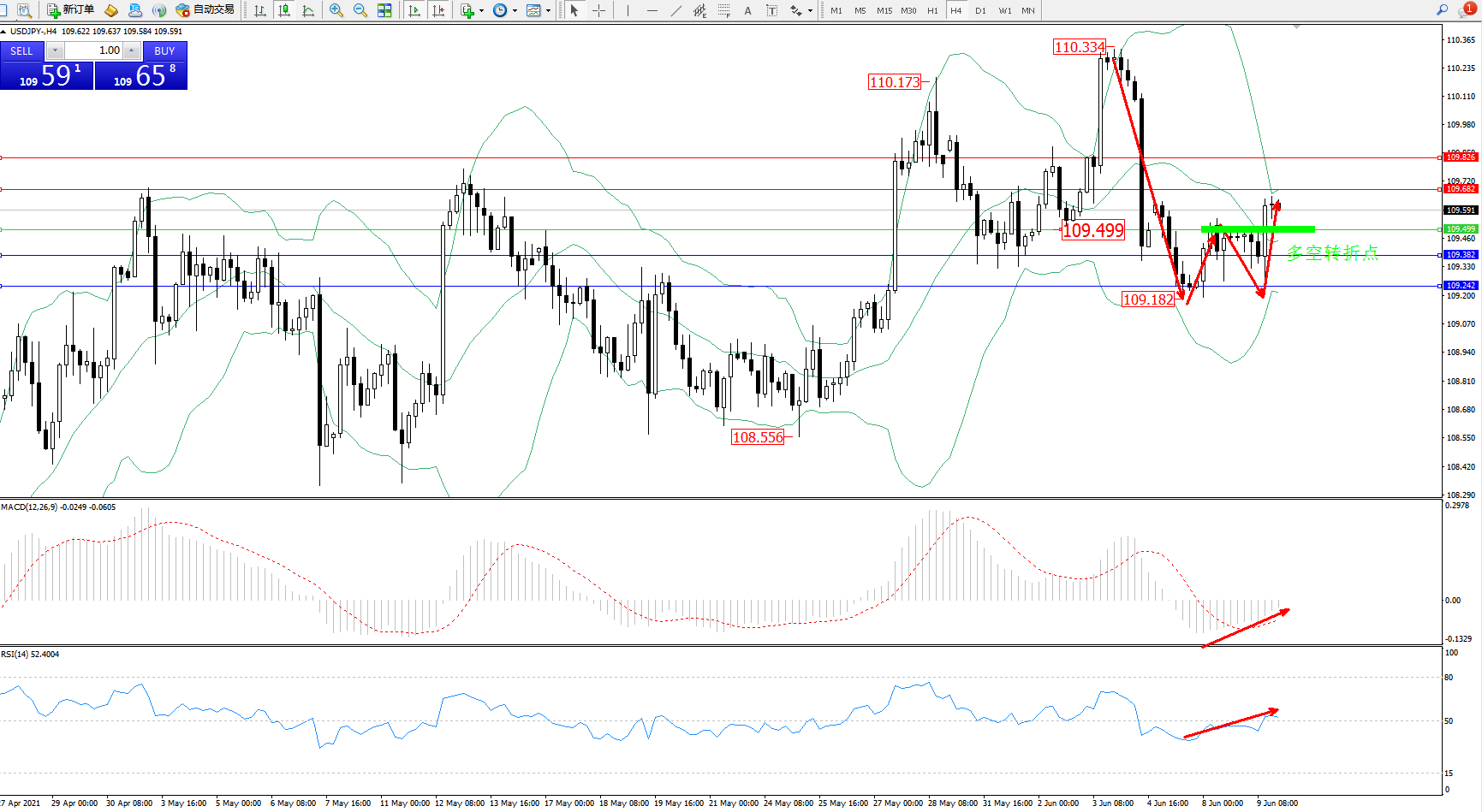 美元兑日圆维持在109.591附近震荡,从中长期来看将受到疫苗接种率的影响,但随着疫苗的推广,经济活动正逐渐开始恢复,美元兑日元可能受到美国利率上升的支撑;当汇价涨至110时,将面临大量的抛售需求,从这个价位开始,运输设备制造商等可能会间歇抛出订单,当升至110以上时,机构投机也会更有兴趣卖出美元,随着这些卖单得到处理,美元兑日元看起来将以缓慢的步伐波动,日本国会参议院全体会议表决通过《产业竞争力强化法》修正案,以促进企业向去碳化和数字化投资。该修正案着眼于在新冠疫情平息后,力争从金融和税制方面支援企业设备投资以提升竞争力。