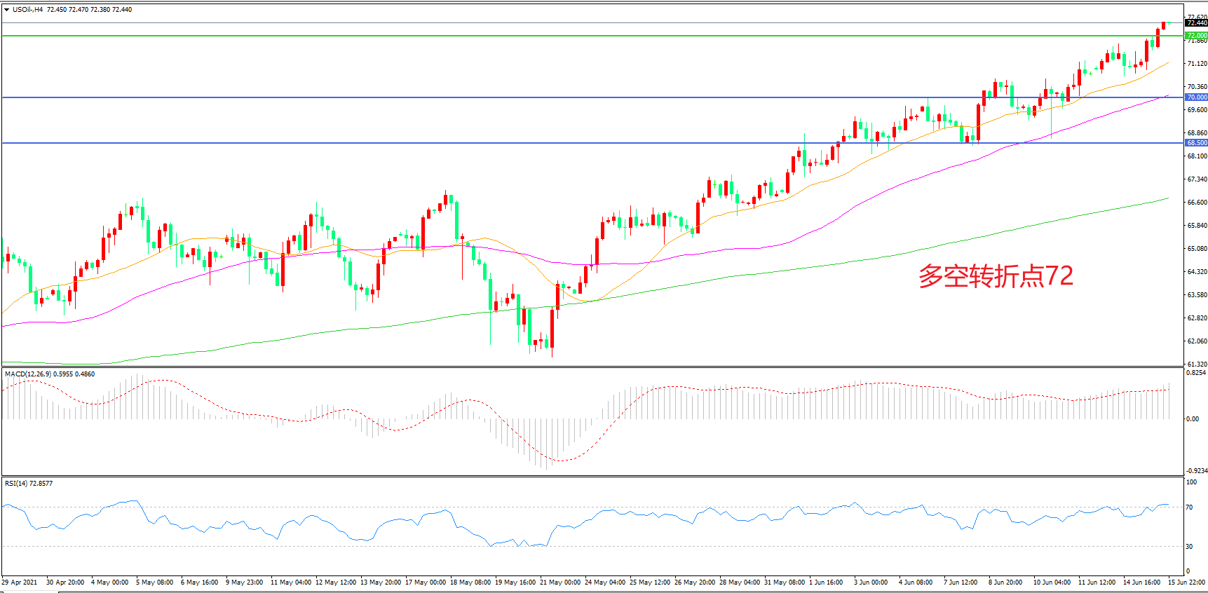 多空转折点:72.00