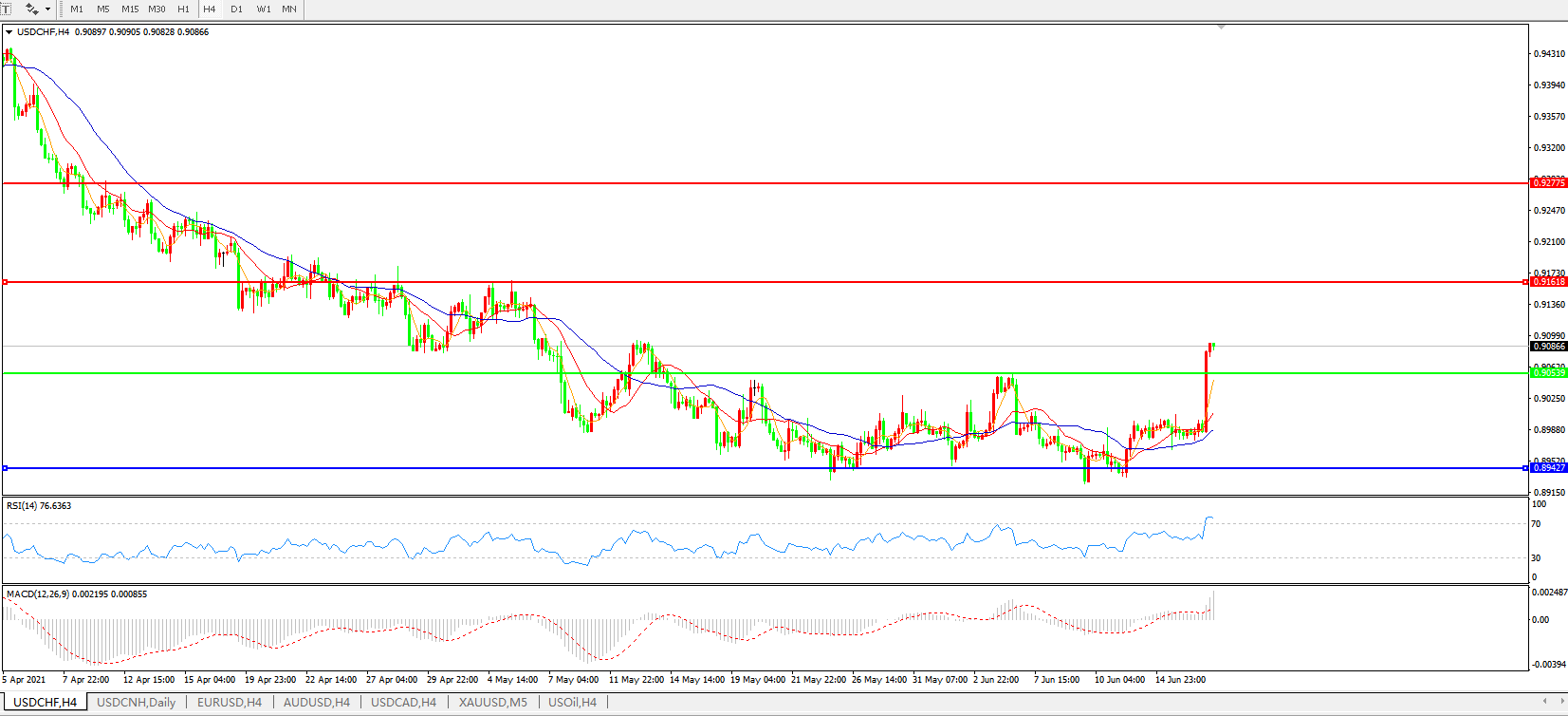 交易策略:0.9050上方看涨,目标0.9160、0.9275