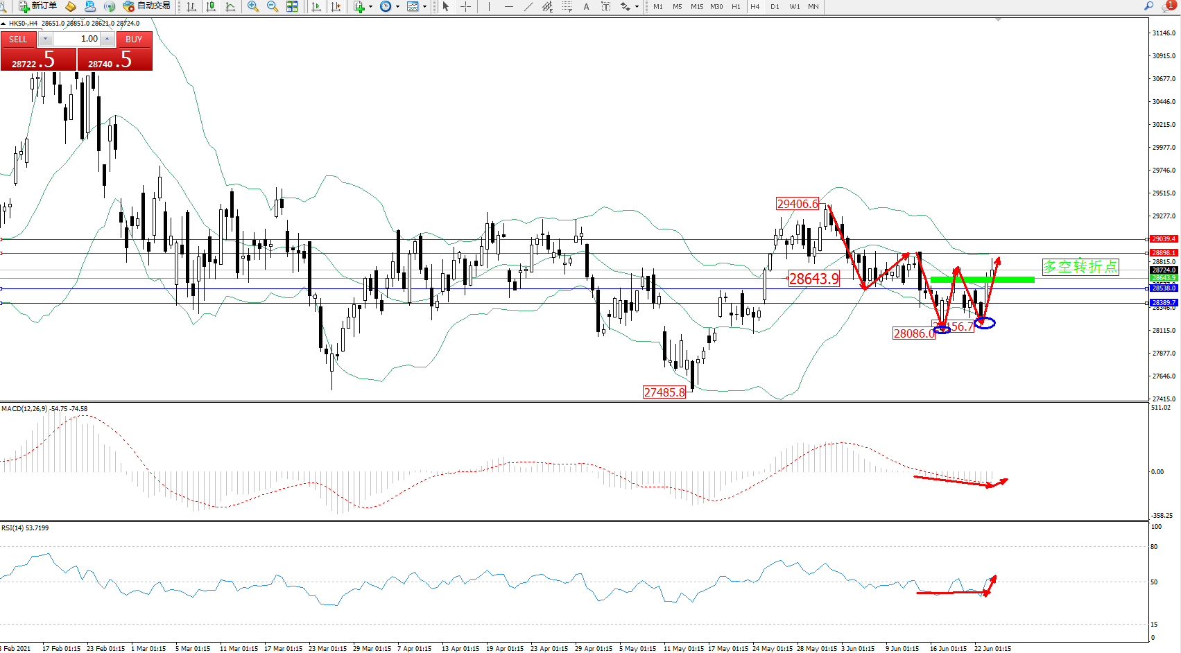 技术点评:空头动力延续布林带指标中下轨区间持续震荡下行,低位纠结于下轨附近节点后,呈双底W型态开始反转上移,即将触及上轨附近节点,布林带指标呈收口走势后开始平移中,MACD指标处于0轴线下轨空头区域维持整理平移中,RSI指标处于50均衡线附近持续震荡后开始上扬;