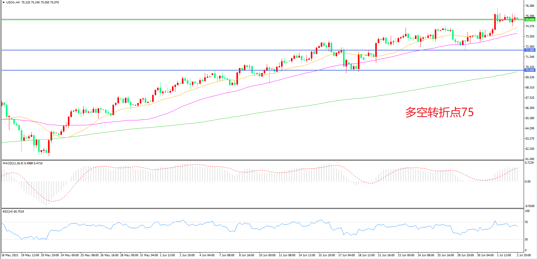 交易策略:在75.00之上看涨,目标78.00    80.00