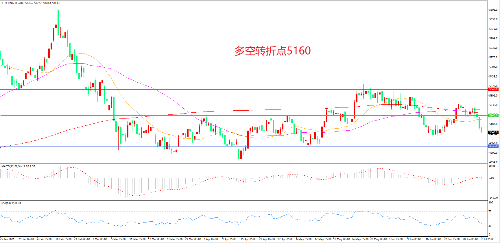 多空转折点:5160.00