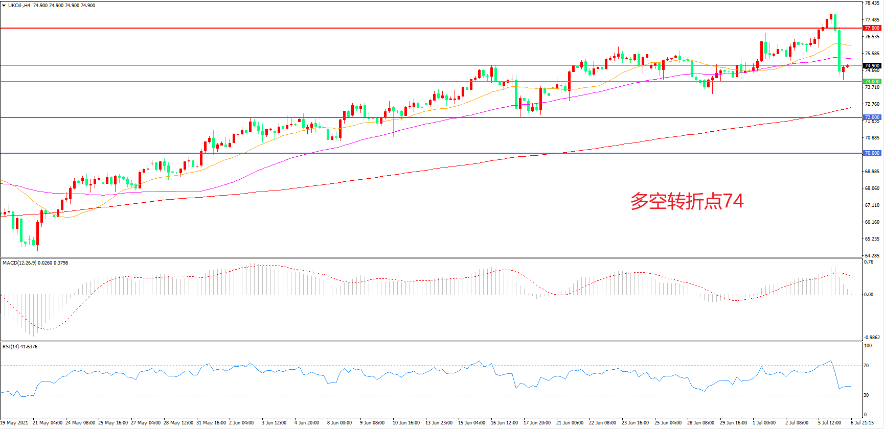 交易策略:在74.00之上看涨,目标77.00    80.00