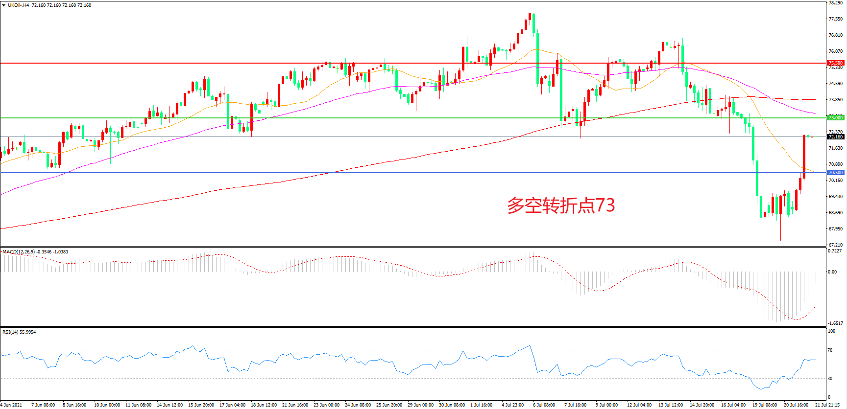 交易策略:在73.00之下看跌,目标70.50           66.50