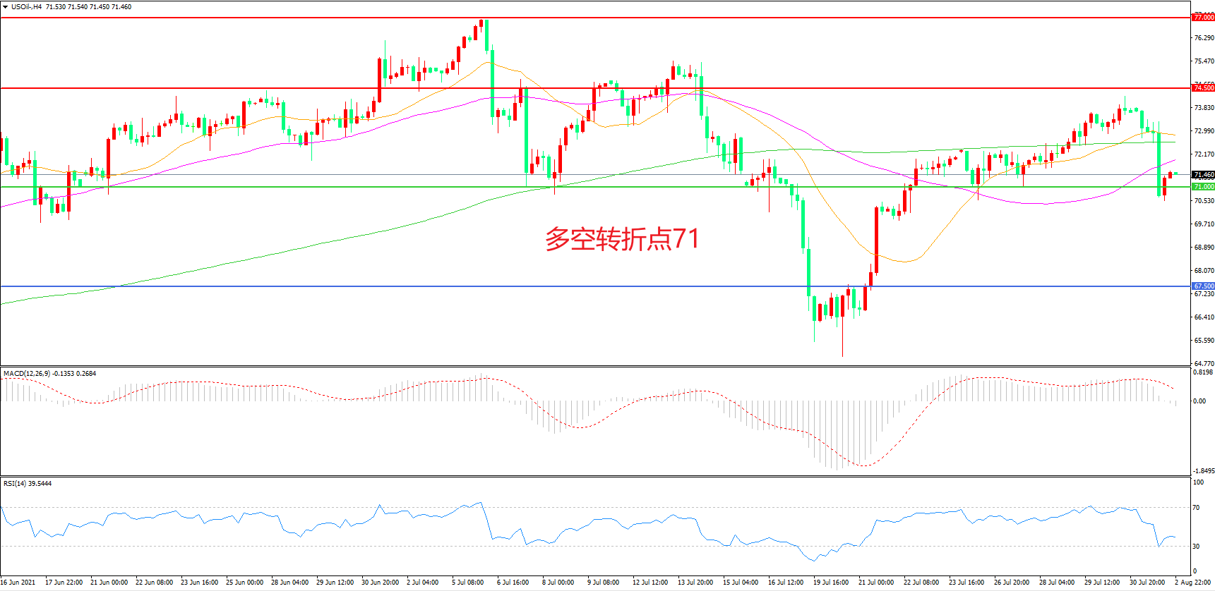 多空转折点:71.00