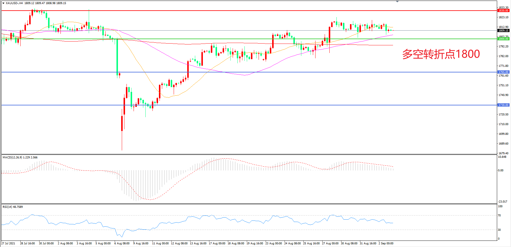 周四(9月2日),美国当周初请失业金人数超预期下降,美联储鸽派信号带来的风险偏好情绪还在继续,现货黄金延续高位震荡,收报1809.11美元/盎司。由于美联储主席鲍威尔表示就业复苏将决定缩减资产购买计划的时机,使得今晚的非农就业报告尤为重要,如果非农数据表现不及预期,有可能引发金价大幅上涨。