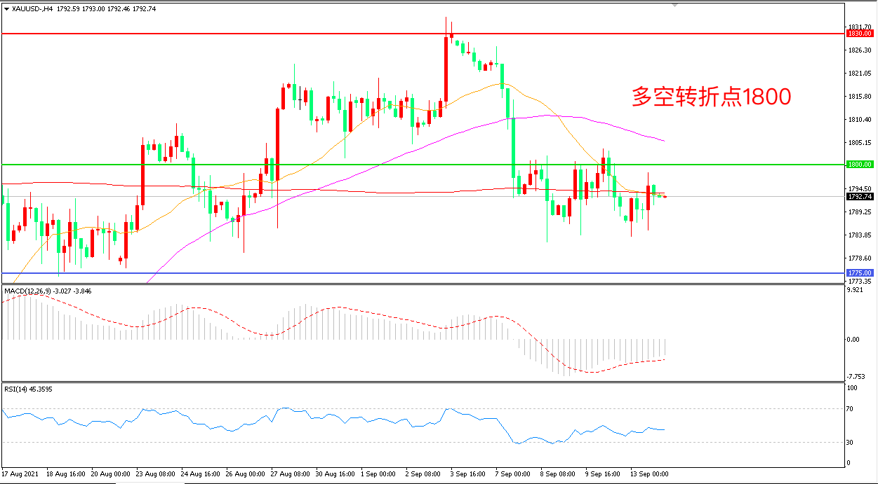 交易策略: 在1800.00之下看跌,目标1775.00 1750.00