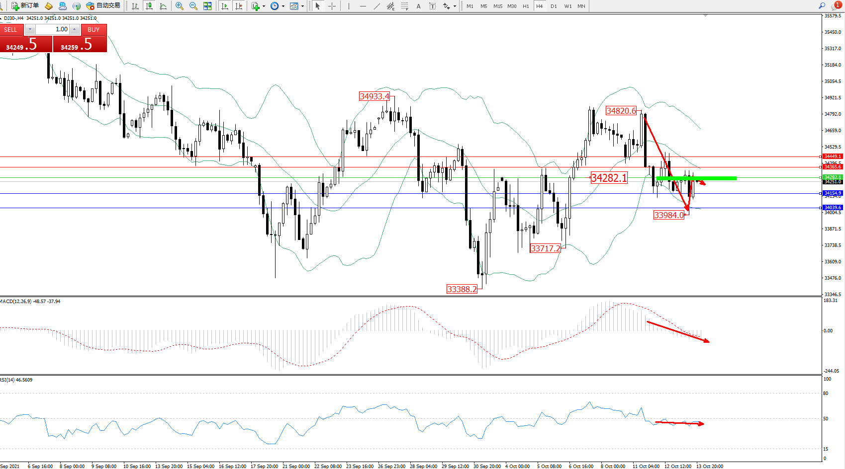 技术点评:高位空头动力呈阶梯式震荡缓慢下行,低位抵达33984位置后开始整理,得到支撑短期回升,布林带指标呈下行趋势走势持续中,MACD指标处于0轴线下方空头区域维持整理下行,RSI指标处于50均衡线下方空头区域持续徘徊中;