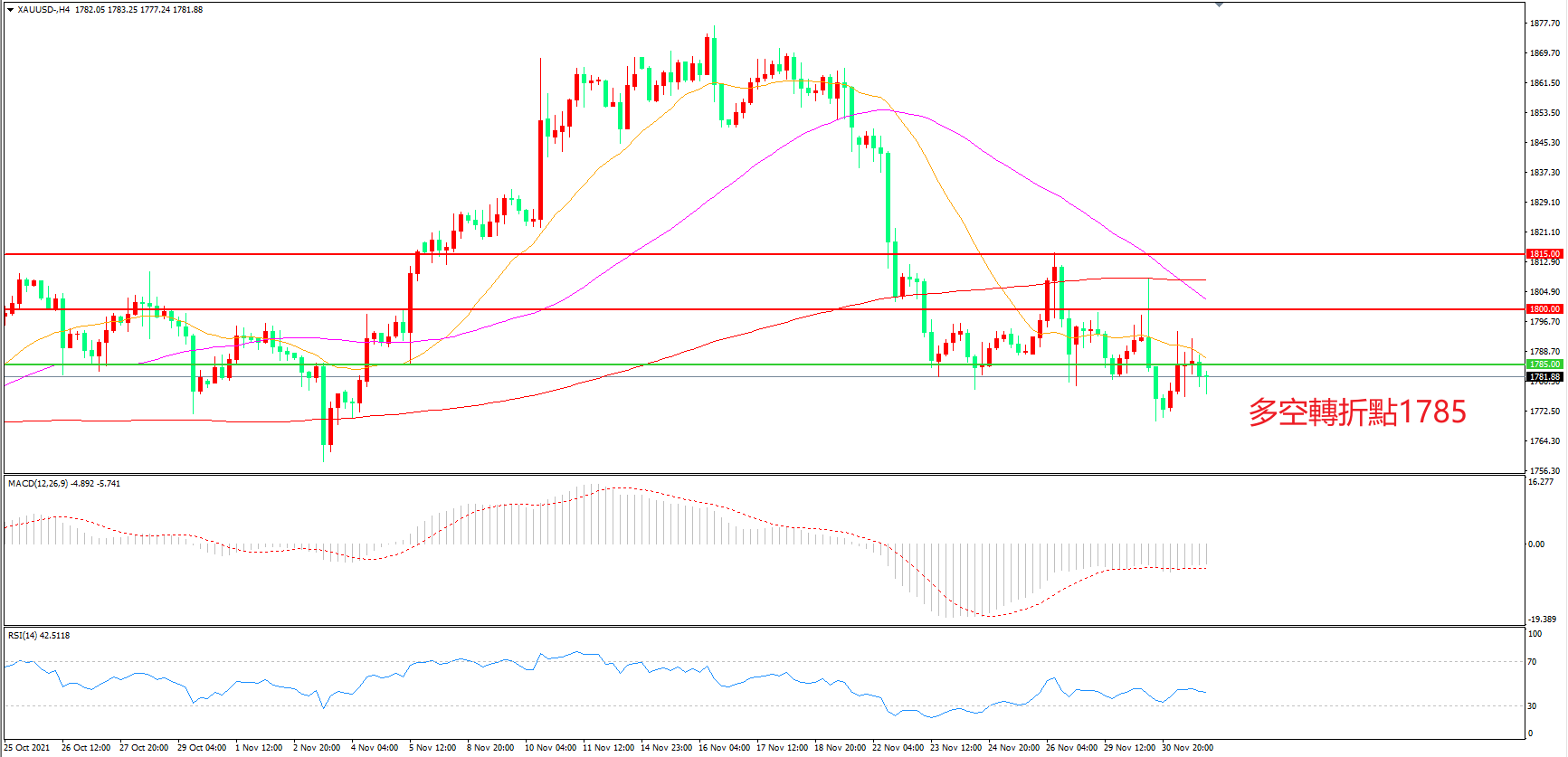 周三(12月1日),美国方面公布有“小非农”之称的ADP就业数据,53.4万人的数据表现差强人意,现货金价维持窄幅震荡,收报1781.25美元/盎司。鉴于美联储主席鲍威尔发布的证词,市场对美联储政策的预期已经发生了转变,如果非农数据出现更好表现,加息预期将使金价再度承压。