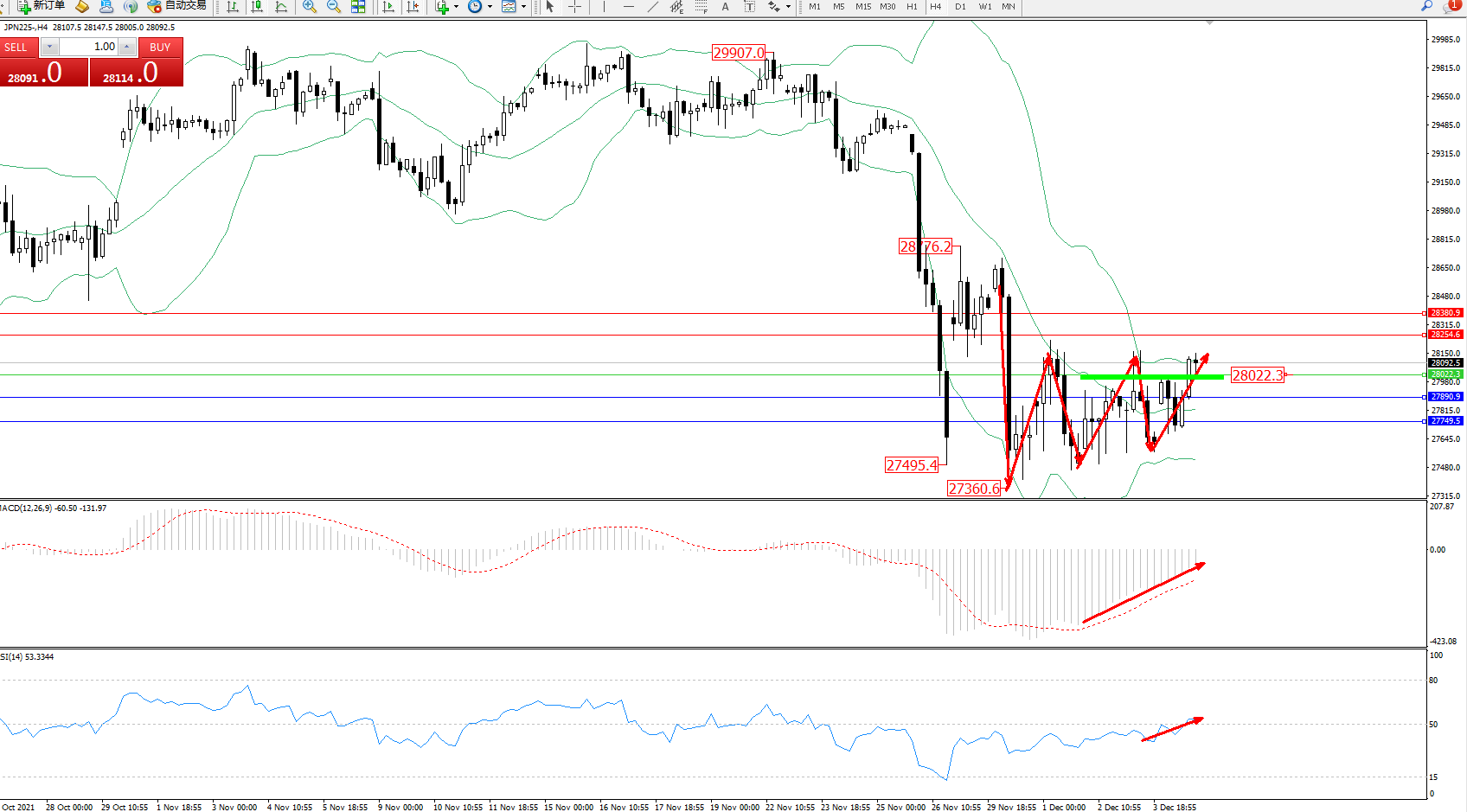 日经225指数12月6日(周一)收盘下跌113.07点,跌幅0.40%,报27916.50点。日本首相岸田文雄:将维持谨慎的抗疫政策。将毫不犹豫提供资金以应对危机。财政健康状况将取决于经济增长形势。日本将投资5000亿日元促进国内传染病疫苗和药品的开发及生产。新一轮新冠病毒爆发可能意味着重新实施限制措施。