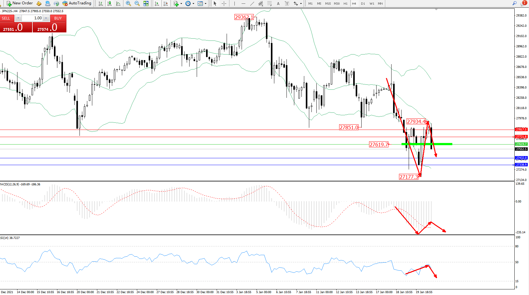 日经225指数1月20日(周四)收盘上涨307.77点,涨幅1.12%,报27775.00点。由于供应瓶颈在2021年底继续缓解,日本12月出口增长速度超过预期,连续第10个月实现同比增长。12月对最大贸易伙伴中国的出口比上年同期增长10.8%。12月以日元计价的出口和进口都创下了1979年有可比数据以来的纪录高位。根据最新调查,由于国内消费的强劲反弹,日本第四季国内生产总值(GDP)环比年率料为增长6.5%。