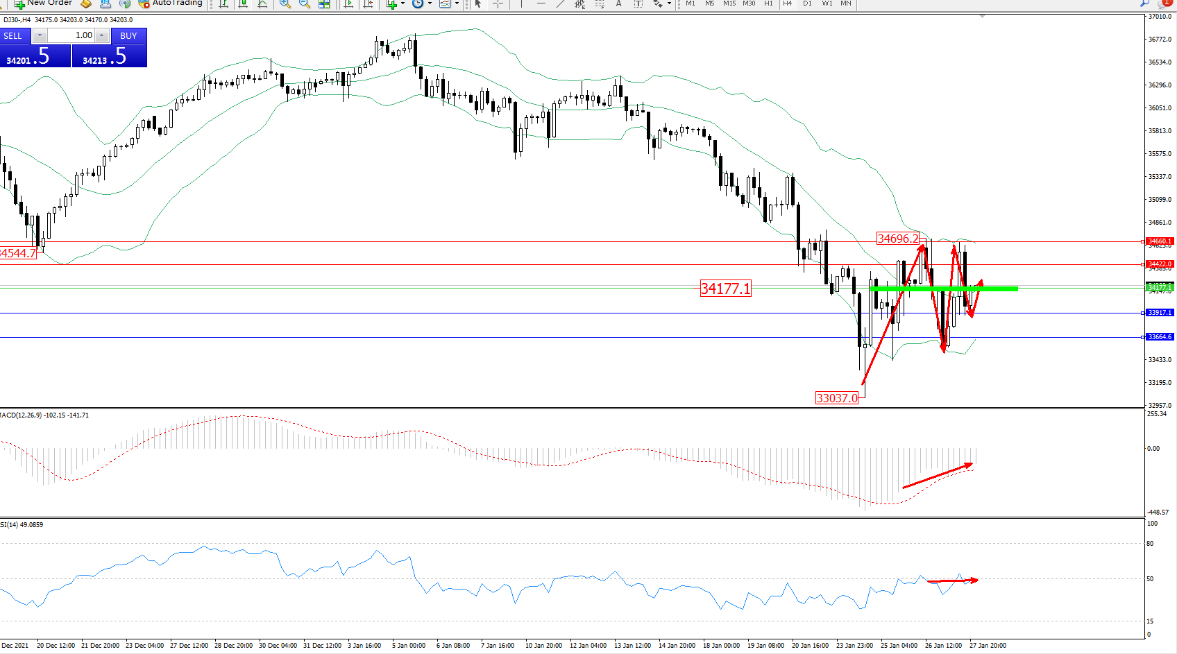 道琼斯指数1月27日(周四)收盘下跌7.31点,跌幅0.02%,报34160.78点;美股中段由高位回落,道指震荡,在华尔街的许多人看来,美国国债市场本月遭遇的痛苦抛售只是一个开场白。美联储主席鲍威尔的鹰派论调加剧了市场的动荡。他说美联储已经做好3月开始加息的准备,随后两年期国债收益率创下2020年3月以来最大涨幅。货币市场迅速开始定价美联储今年将加息近5次,而去年12月时预计仅3次。但债券分析师和投资者表示,市场仍低估了美联储抑制通胀所需的力度。“市场不相信经济能够承受未来18个月加息6-7次,”Jefferies首席美国金融经济学家Aneta Markowska表示。