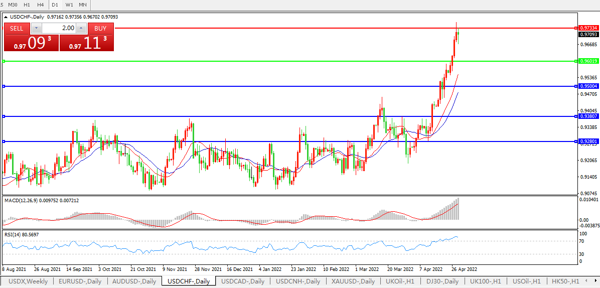 美指创月度涨幅纪录,美元兑瑞郎持续拉升