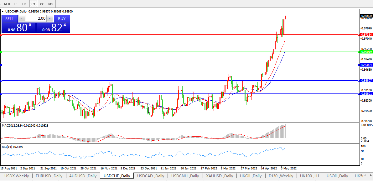 美元兑瑞郎USDCHF 日线图: