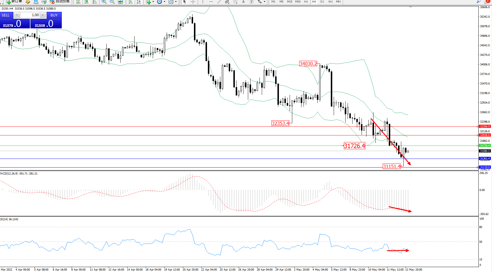 技术点评:空头动力延续布林带指标通道中下轨区间持续震荡下挫,低位快速跌破布林带指标下轨至31151位置节点后有快速回升,短期或维持低位徘徊,布林带指标呈空头动力不断震荡向下移动中,MACD指标处于空头区域维持弱势整理平移,RSI指标处于空头区域维持窄幅整理徘徊;