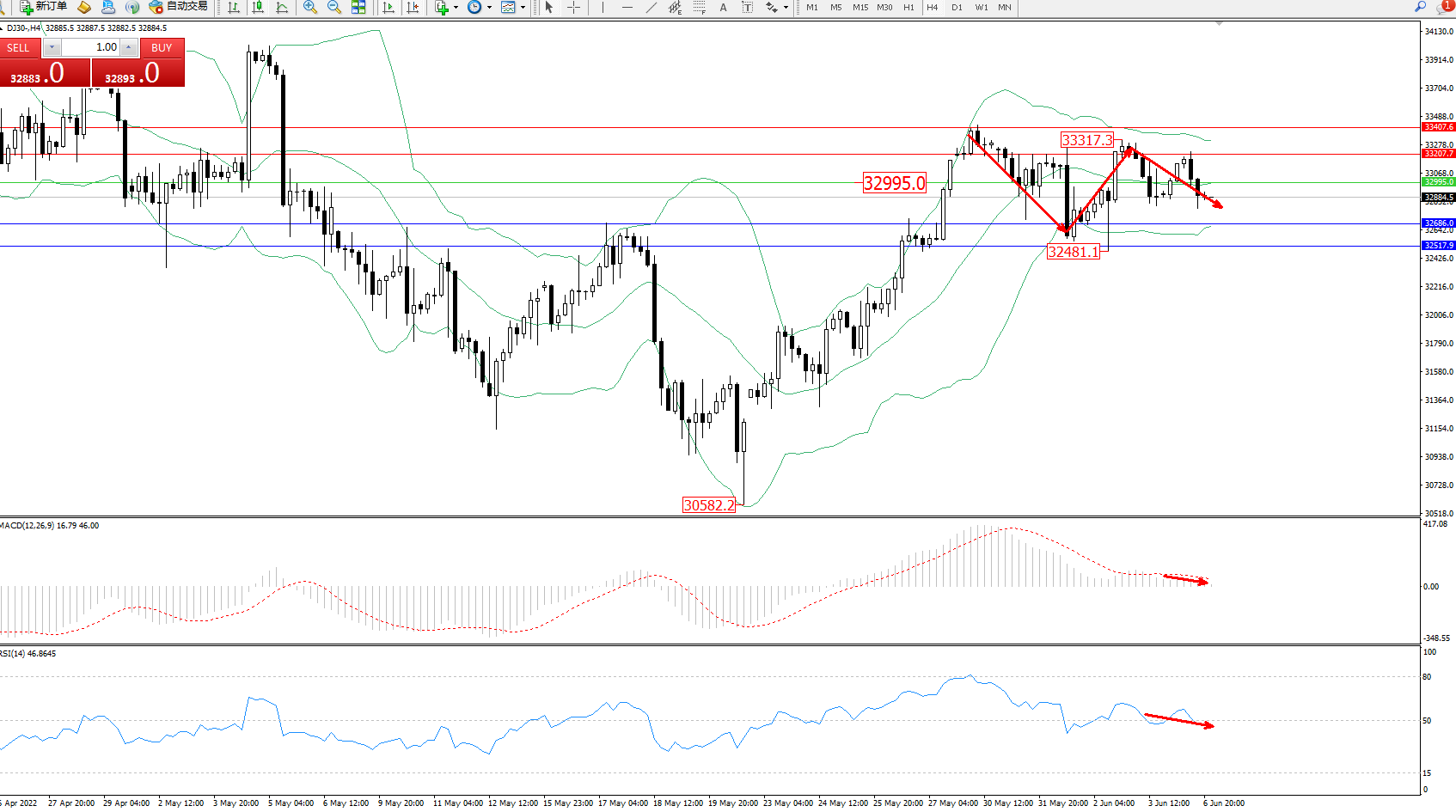 道琼斯指数6月6日(周一)收盘上涨16.08点,涨幅0.05%,报32915.78点;美国股市周一收盘小幅走高,受亚马逊和其他成长型股提振,而对通胀和利率的持续担忧令涨幅受限。