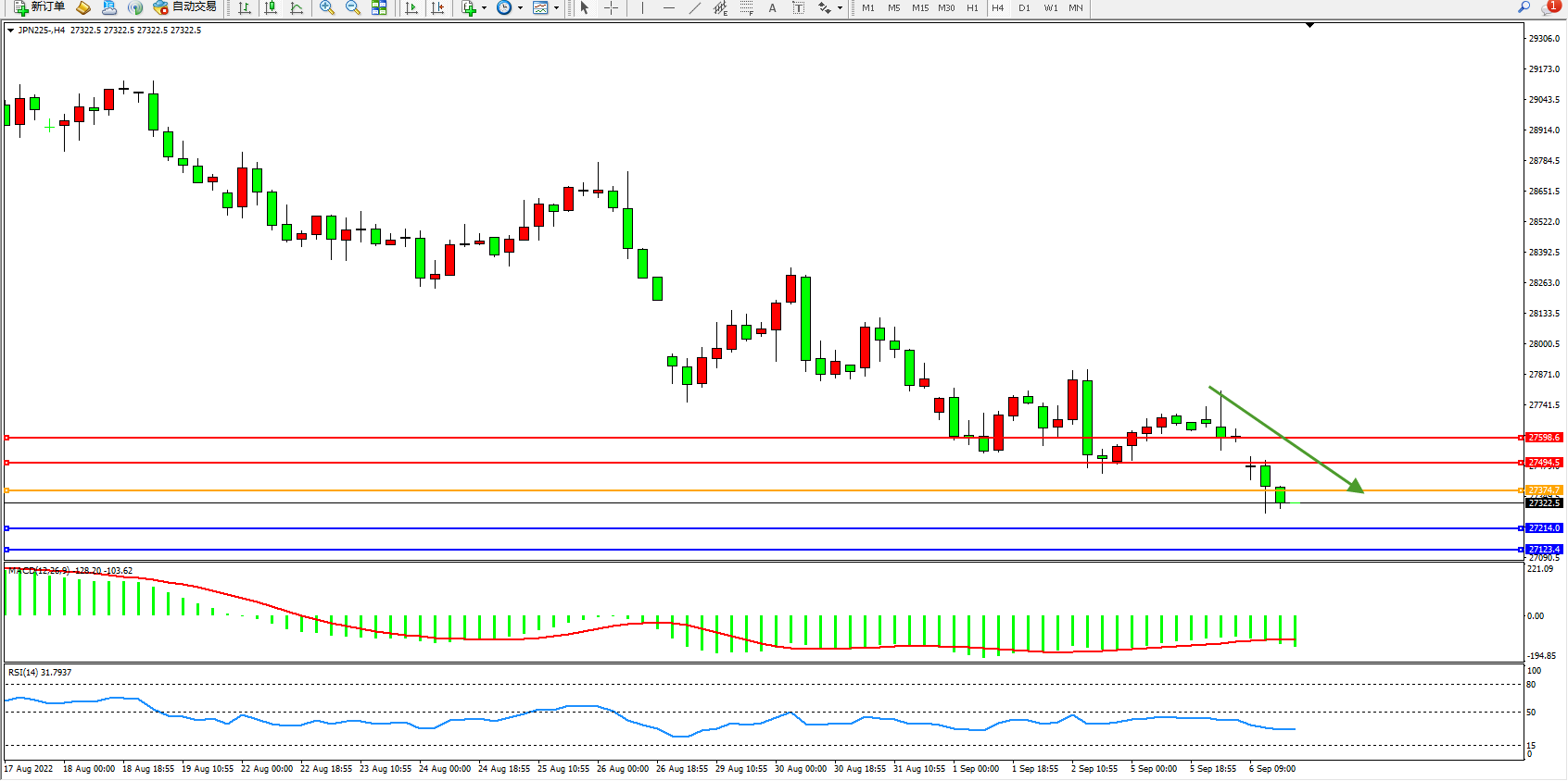 日经225指数9月6日(周二)收盘下跌6.11点,跌幅0.02%,报27613.50点。新冠疫情再度升温,日本7月家庭支出仍连续第二个月增长,从实质薪资下降到服务业活动萎缩,本周出炉的数据显示民间消费停滞不前,削弱了4-6月取得的一些成果。