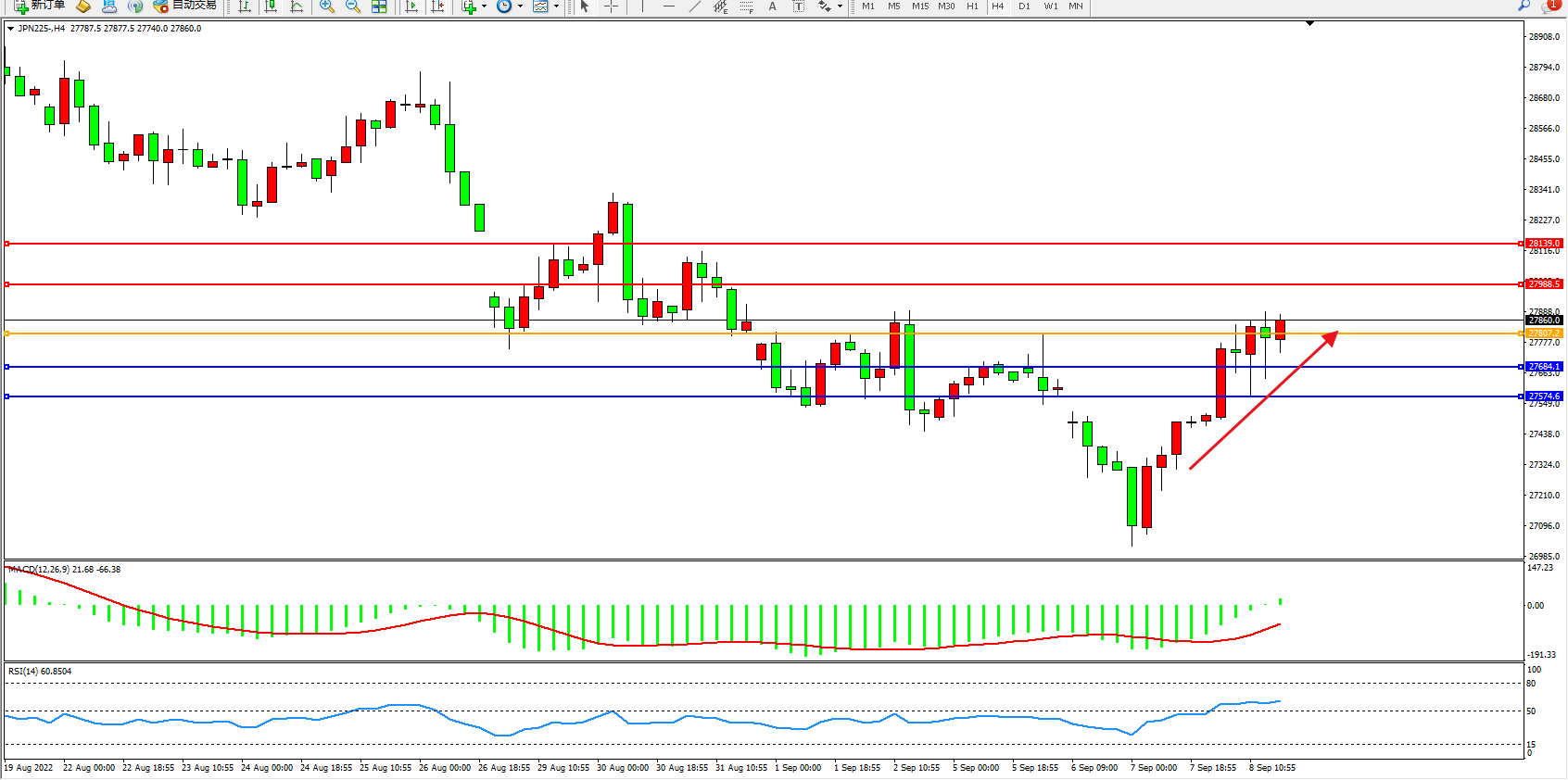 日经225指数9月8日(周四)收盘上涨630.20点,涨幅2.30%,报28060.50点。世界卫生组织(WHO)新冠病毒感染症统计数据显示,8月29日~9月4日的一周中,日本新增感染人数比上周减少7%,达到116.4787万人,连续7周为全球最多。