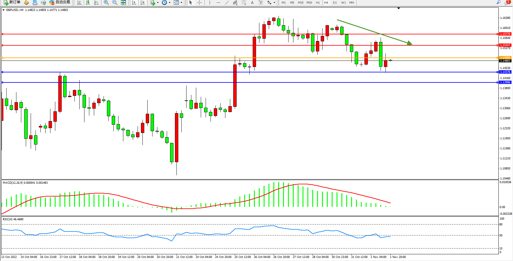 备选策略:1.14900上方看涨,目标1.15357、1.15770