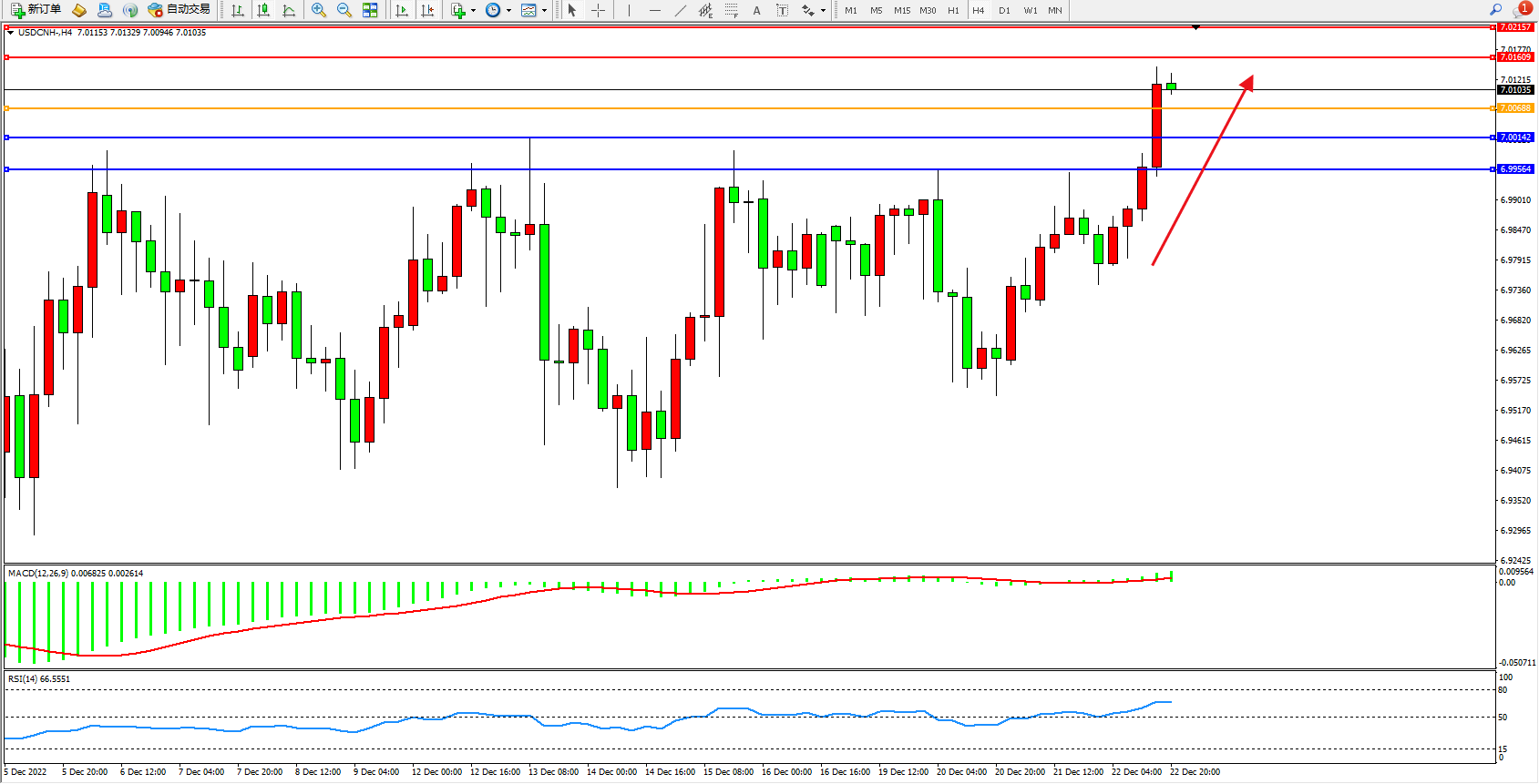 交易策略:7.00688上方看涨,目标7.01609、7.02157