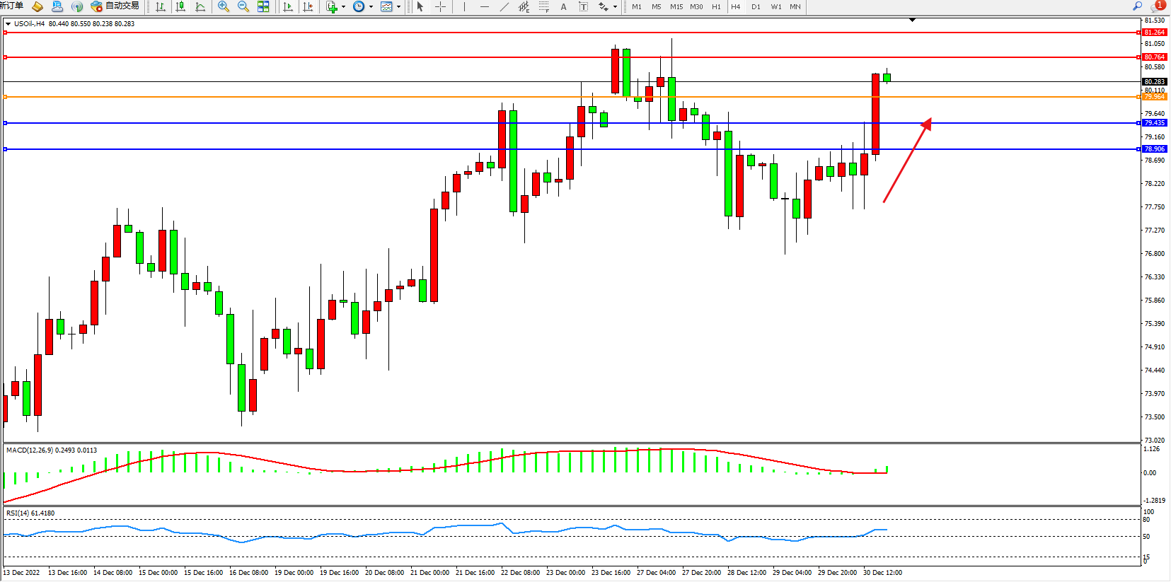 原油维持80.283附近震荡,乌克兰局势导致供应紧张,但美元走强以及需求疲软限制了油价升幅。2023年又将是充满不确定性的一年,波动会很大。