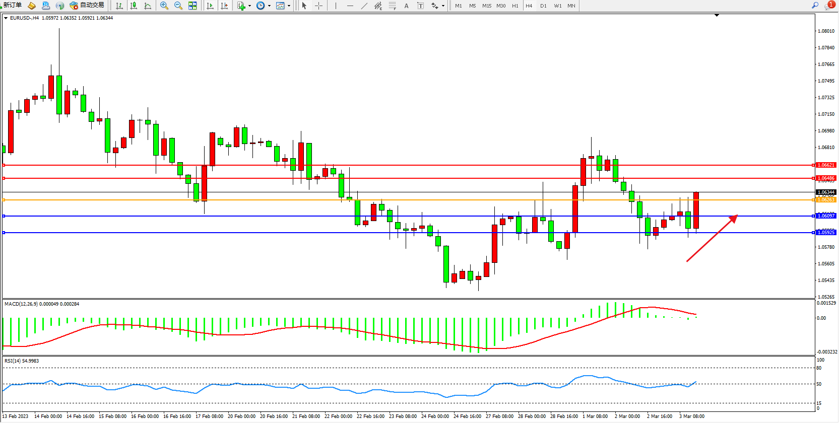 欧元兑美元维持1.06344附近震荡,2欧洲央行月份商业活动的显著扩张有助于缓解对欧元区衰退的担忧。但人们对需求的潜在强度仍存在疑虑,特别是2月份的部分增长似乎是由临时因素推动的,比如反常的温暖天气和供应商交货时间的显著改善