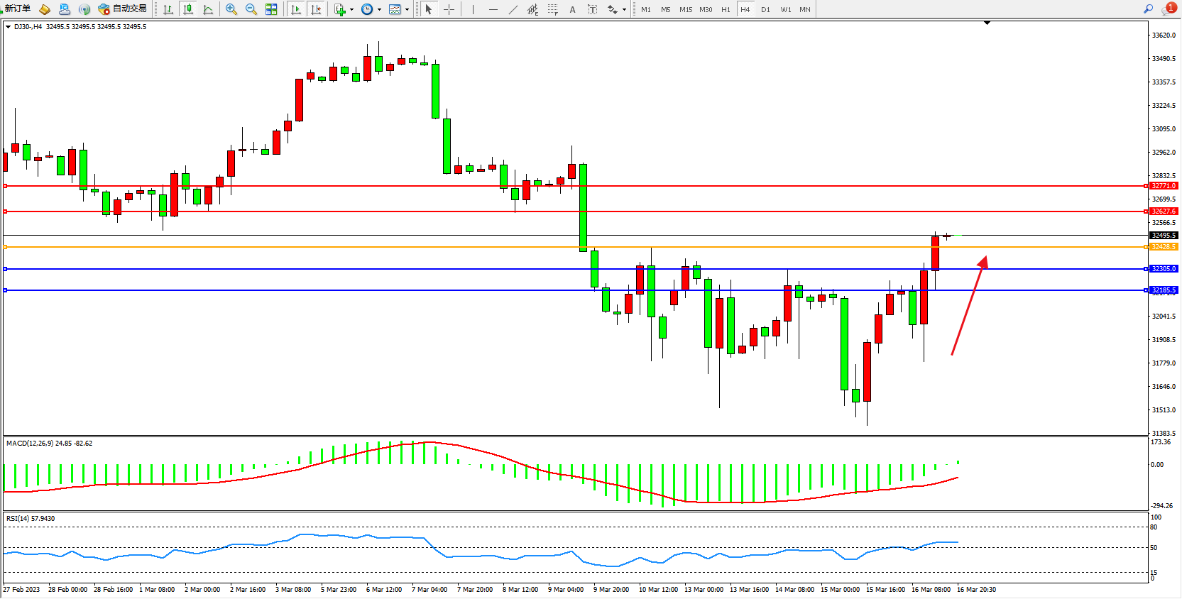 道琼斯指数3月16日(周四)收盘上涨373.04点,涨幅1.17%,报32247.61点;市场预计美联储下周将采取放松的政策,美元可能继续下跌。市场似乎仍在消化过去几天的事态发展,并在考虑对货币政策的影响。