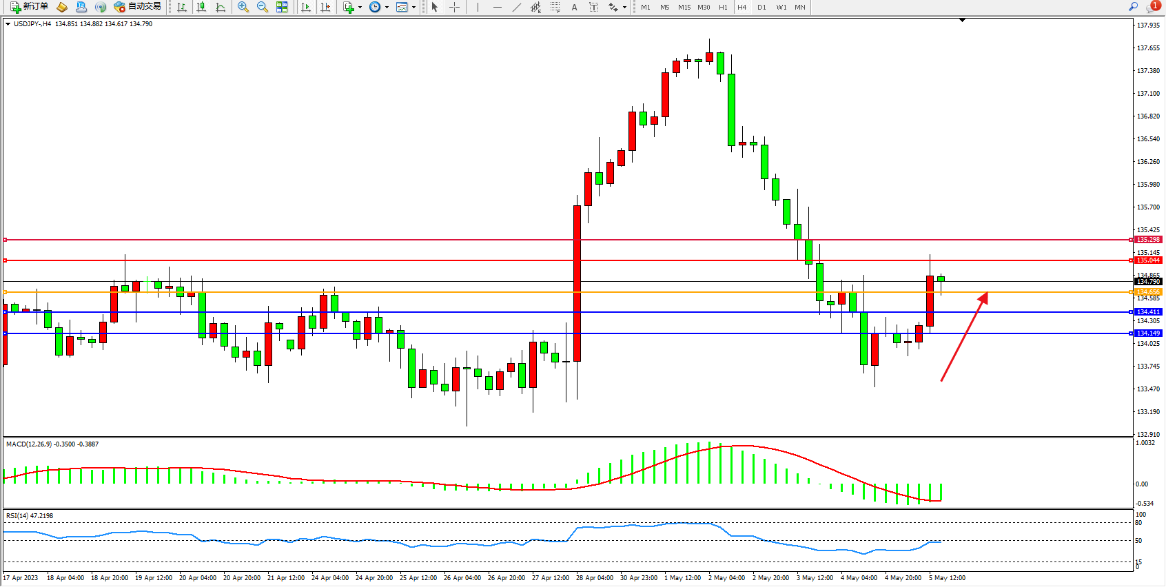 阻力位:135.044  135.298