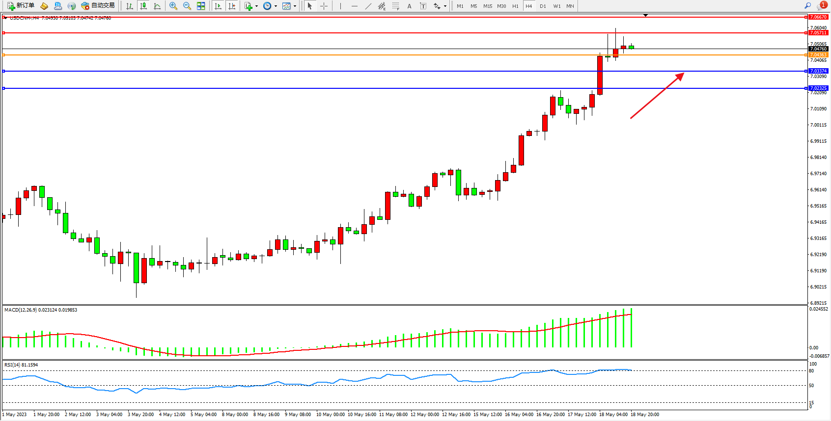 交易策略:7.04363上方看涨,目标7.05711 7.06670