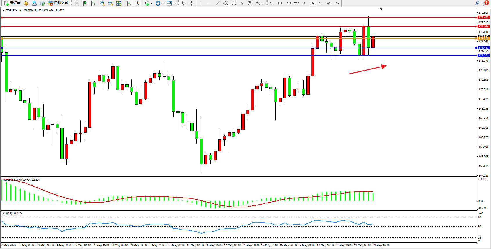 4小时图看:高位短期维持宽幅震荡,市场整体处于偏多头趋势中,短期看涨情绪依旧,MACD指标处于多头区域维持整理,RSI指标处于50均衡线上側弱势徘徊;