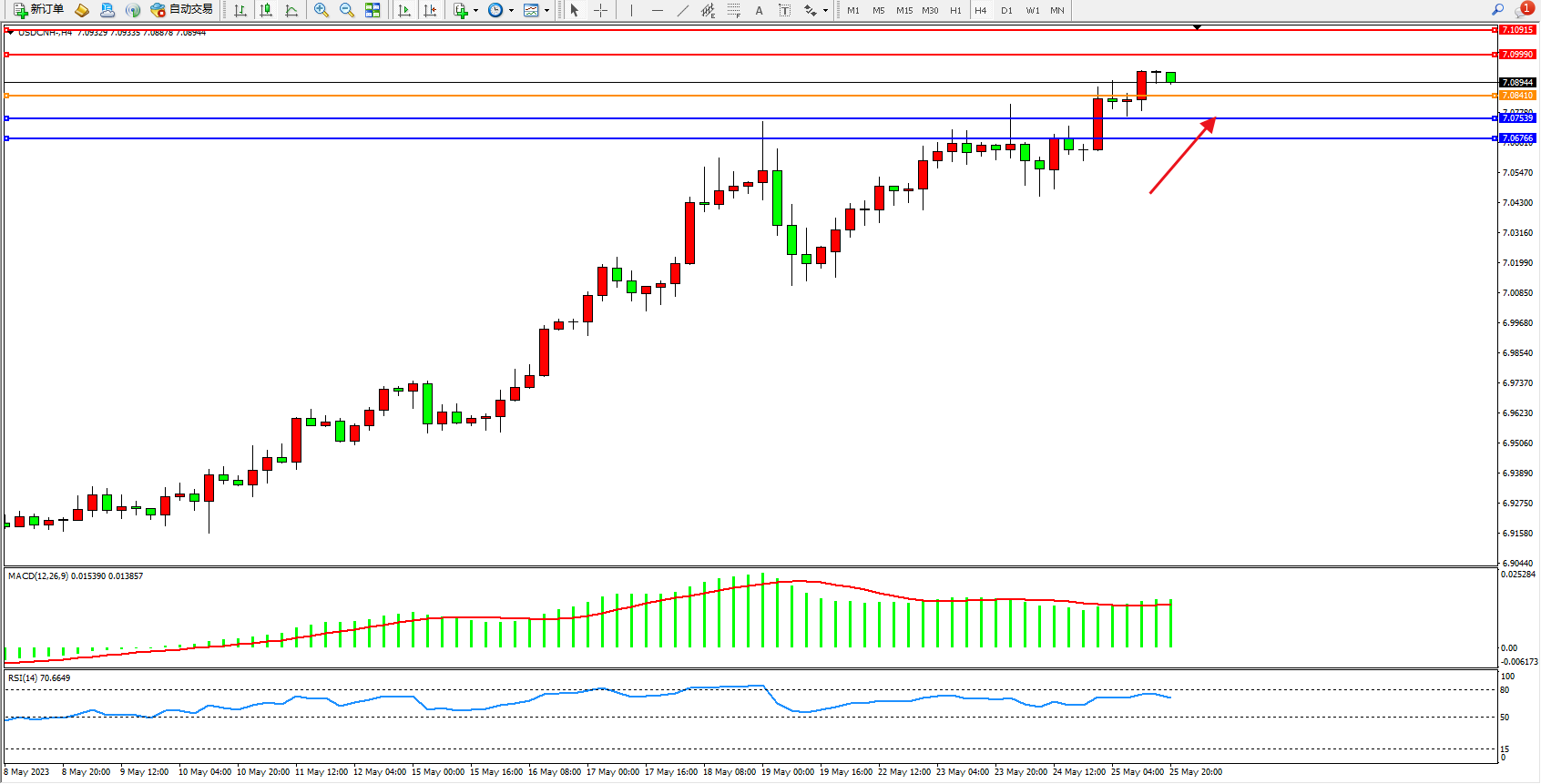 交易策略:7.08410上方看涨,目标7.09990  7.10915
