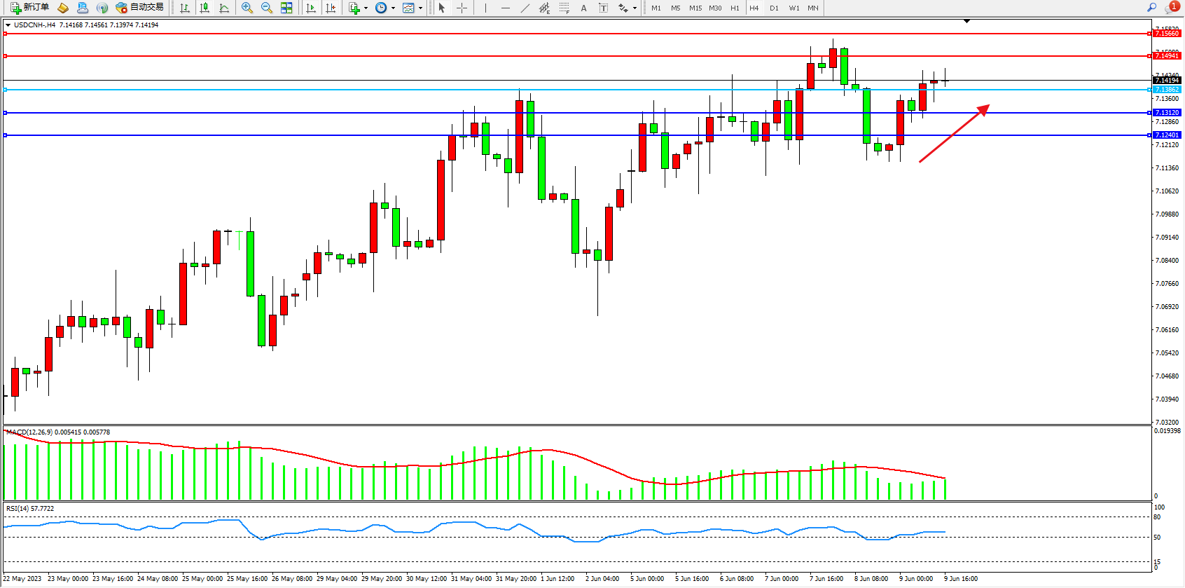 备选策略:7.13862上方看涨,目标7.14941  7.15660