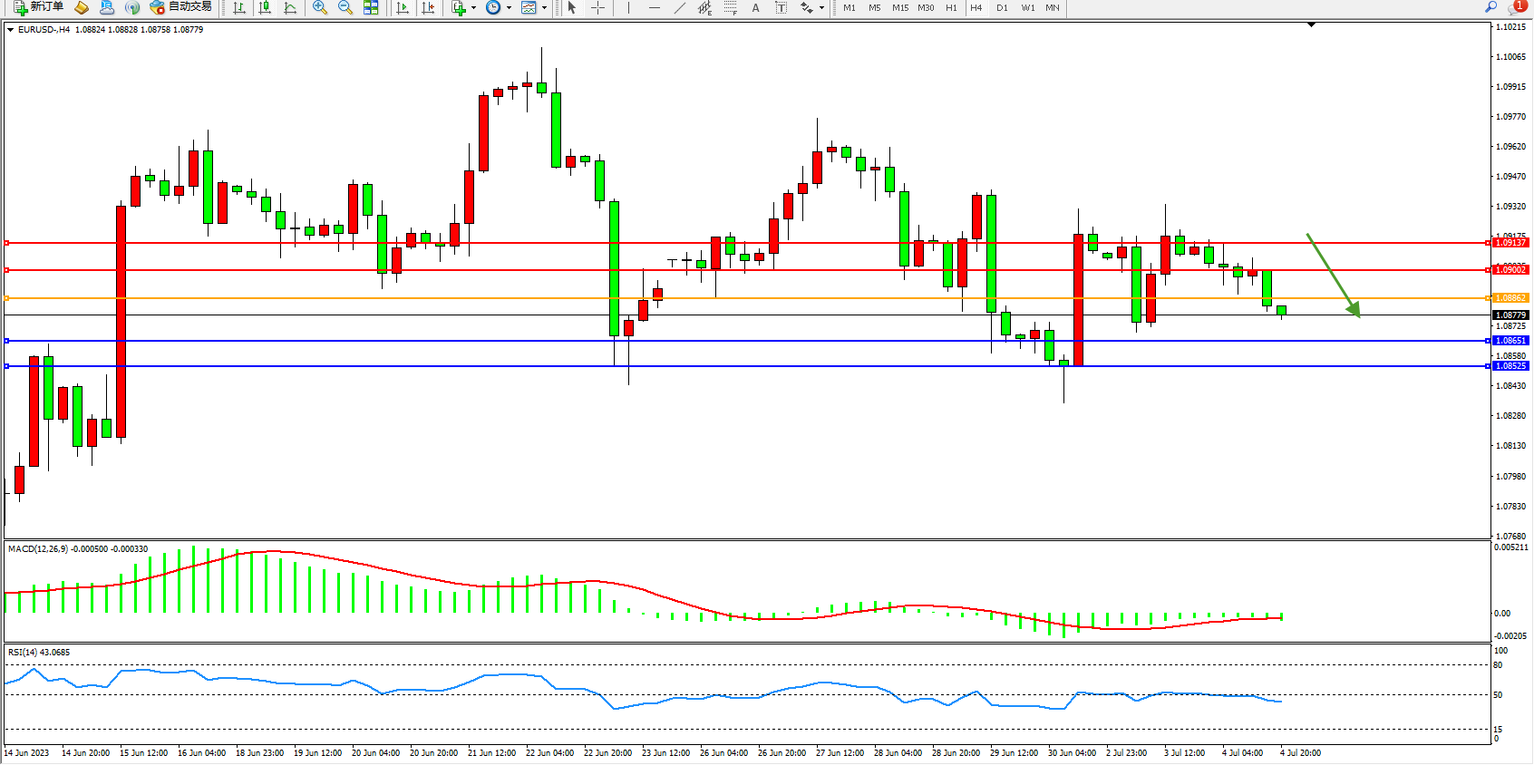 交易策略:1.08862下方看跌,目标1.08651 1.08525