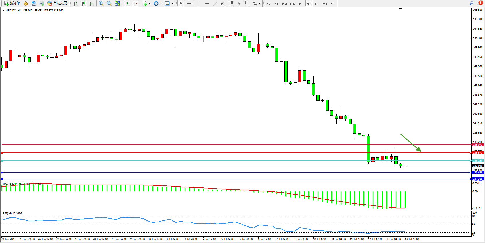 交易策略:138.280下方看跌,目标137.698 137.385